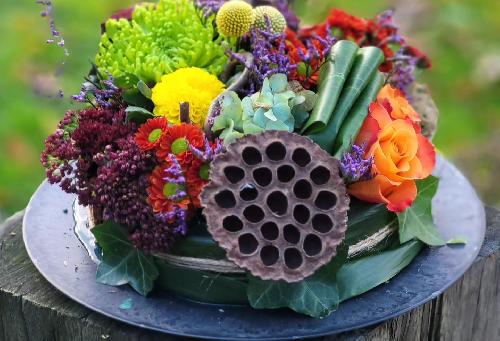 We willen onder professionele begeleiding van Jeanne Dolstra van Het Bloemhotel uit Gemonde een mooi kerststuk gaan maken.